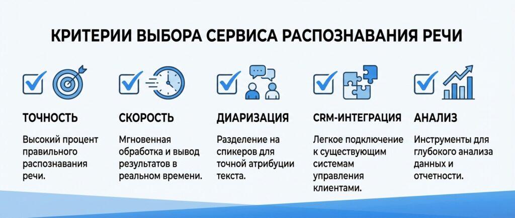 При выборе сервиса речевой аналитики для колл-центра обратите внимание на следующие критерии: