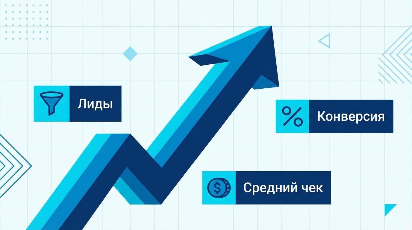 Допустим, у компании 1 000 лидов в месяц, конверсия 5%, средний чек 50 000 руб. Выручка: 1 000 x 0,05 x 50 000 = 2,5 млн руб. Руководитель хочет расти на 40%. Первая реакция — «надо больше лидов». Но посмотрим на альтернативу: что если поднять конверсию с 5% до 7%? Выручка: 1 000 x 0,07 x 50 000 = 3,5 млн руб. Рост 40% — без единого дополнительного рубля в маркетинг.